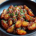Diese knusprigen Honig-Chili-Kartoffeln bieten eine harmonische Kombination aus Süße und Schärfe. Die Kartoffelstücke werden außen goldbraun und zart knusprig gebacken, während sie innen weich bleiben. Anschließend werden sie in einer glänzenden Honig-Chili-Sauce geschwenkt, die ihnen eine unwiderstehliche klebrige Textur und einen komplexen Geschmack verleiht. Garniert mit Sesam und frischen Kräutern, sind sie eine vielseitige Beilage oder ein köstlicher Snack.