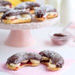 Diese Schokobananen sind eine köstliche Kombination aus einem knusprigen Keksboden, fruchtiger Himbeermarmelade, einer leichten Sahnefüllung und frischen Bananenscheiben. Umhüllt von einer knackigen Schokoladenschicht und fein bestäubt mit Puderzucker, bieten sie ein harmonisches Zusammenspiel von süßen und fruchtigen Aromen sowie verschiedenen Texturen. Ein einfaches, aber raffiniertes Gebäck, das ohne Backen zubereitet wird und sich ideal als Dessert oder süßer Snack eignet.