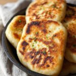 Dieses schnelle Pfannenbrot ohne Hefe bietet eine wunderbare Kombination aus einfacher Zubereitung und köstlichem Geschmack. Die goldbraun gebratenen Fladen sind außen leicht knusprig und innen angenehm weich und luftig. Ein Hauch von Salz und die feine Textur machen es zu einer vielseitigen Beilage oder einem schnellen Snack, der direkt aus der Pfanne serviert wird.