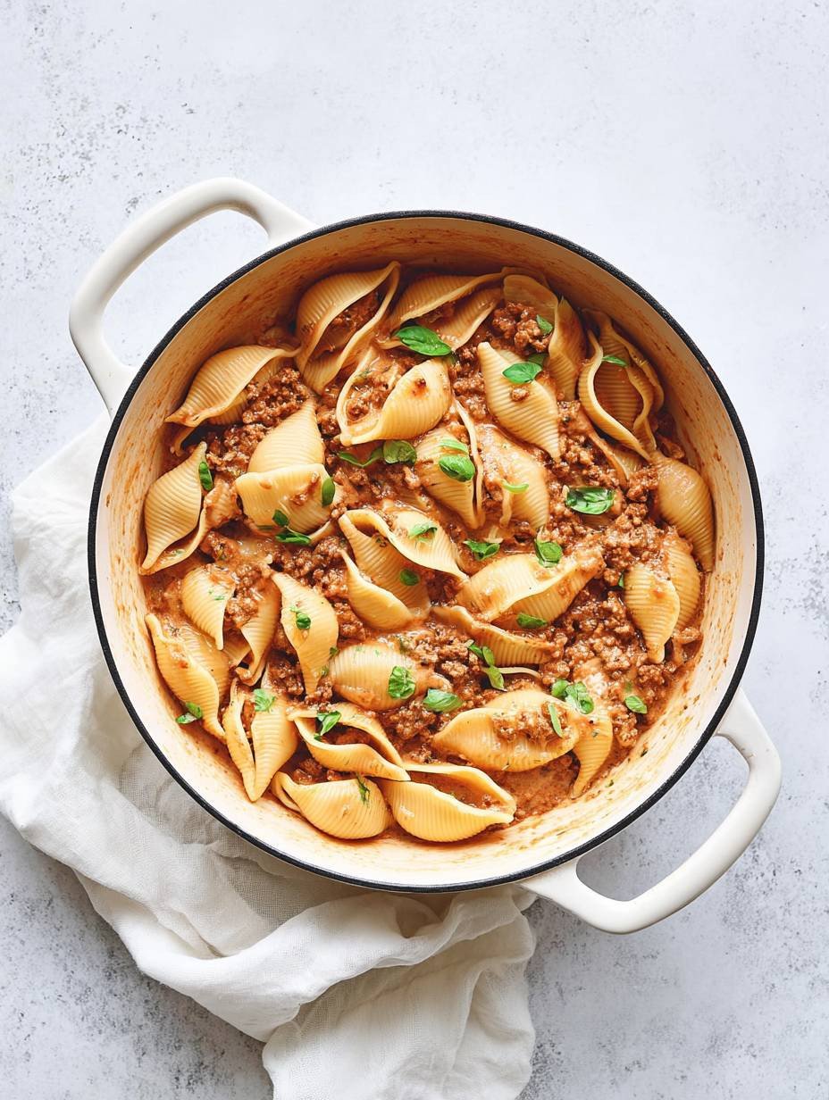 Schnelle Muschel-Nudeln in cremiger Hack-Soße