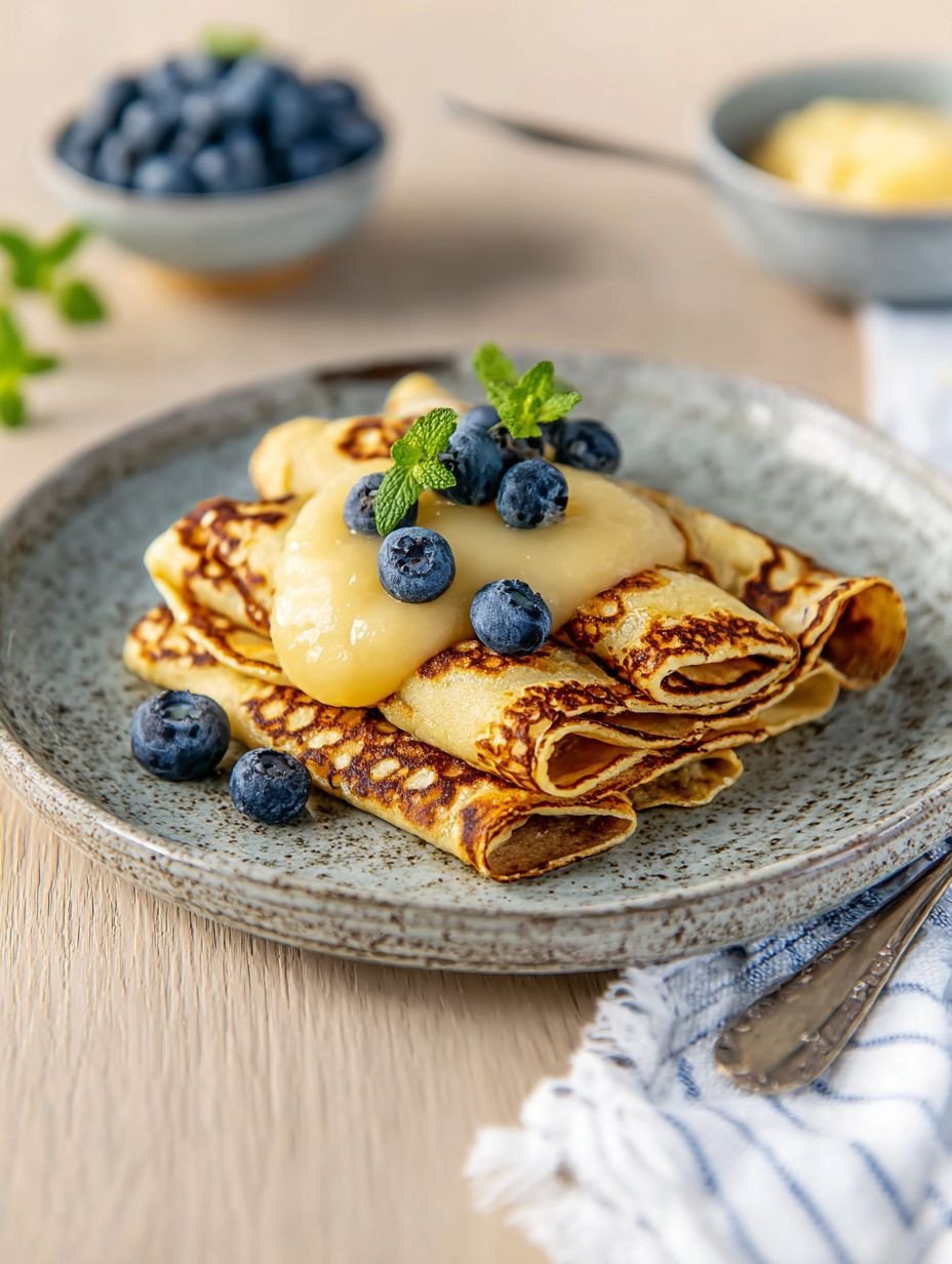 Himmlische Pfannkuchen mit Blaubeeren & Vanillecreme