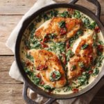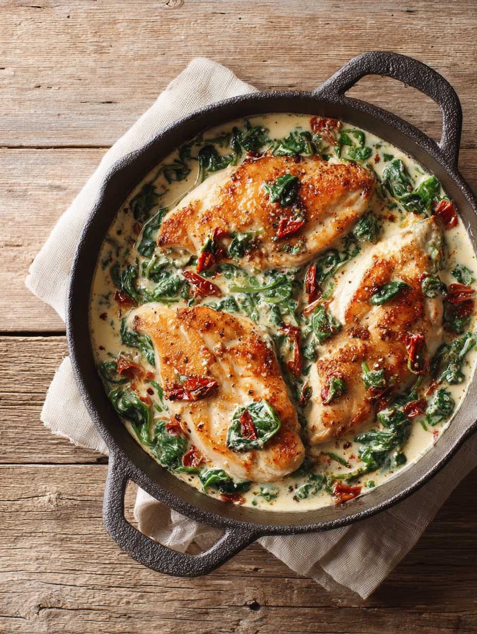Ich erinnere mich noch gut, wie ich als Kochanfänger dachte, solch elegante Gerichte seien nur erfahrenen Küchenmeistern vorbehalten. Dann stolperte ich über dieses Rezept für cremiges Hähnchen mit Spinat und getrockneten Tomaten, und plötzlich stand ich da, glänzend vor Stolz, während meine Familie jubelte – und ich nur dachte: „Das war ja einfacher als meine Socken zu sortieren!“