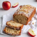 Dieser saftige Apfelkuchen wird in einer Kastenform gebacken und besticht durch seine feine Textur, die durch die Zugabe von Haferflocken entsteht. Saftige Apfelstücke sind gleichmäßig im Teig verteilt und verleihen dem Kuchen eine angenehme Süße und leichte Säure. Die Oberfläche ist goldbraun gebacken, leicht mit Puderzucker bestäubt und mit dünnen Apfelscheiben garniert. Ein klassischer Genuss, der sich ideal zum Kaffee oder als Dessert eignet.