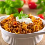 Diese herzhafte One Pot Pasta mit Hackfleisch & Schmand ist mehr als nur ein Rezept – sie ist ein Versprechen für unkomplizierten Genuss und puren Geschmack, der die Seele wärmt. Die einfache Zubereitung in nur einem Topf macht sie zum perfekten Kandidaten für schnelle Wochentagsabende oder gemütliche Wochenendessen, an denen der Fokus auf dem Essen und der Gesellschaft liegen soll, nicht auf einem Berg von Abwasch. Mit ihrem reichen, ausgewogenen Geschmacksprofil und der cremigen Konsistenz wird dieses Gericht garantiert einen festen Platz in deinem Repertoire finden. Probiere es aus und lass dich von der Magie des One Pot Kochens verzaubern!