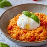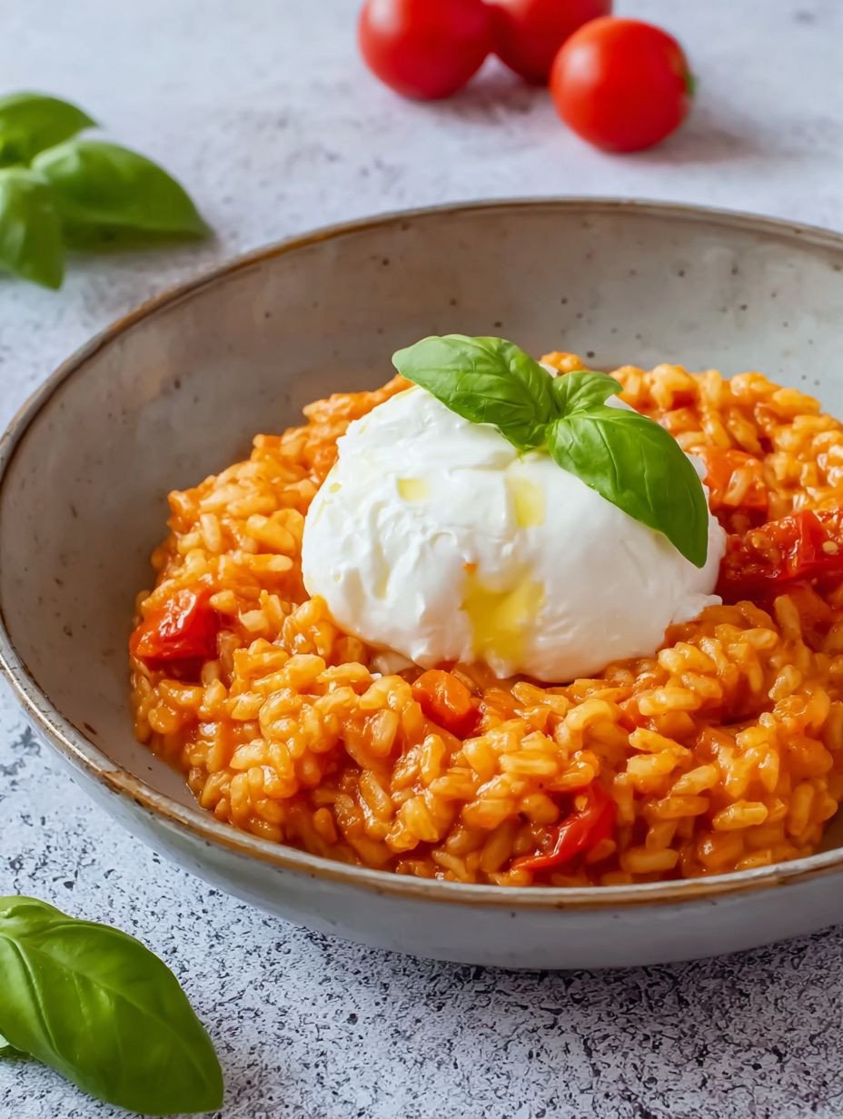 Himmlisches cremiges Tomatenrisotto mit Burrata