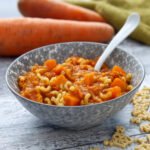 Der Duft von süßen Karotten, umhüllt von einer milden Tomatensauce, der sich mit dem zarten Aroma von frisch gekochten Nudeln mischt – ein warmer, einladender Gruß aus der Küche, der kleine Bäuche glücklich macht.