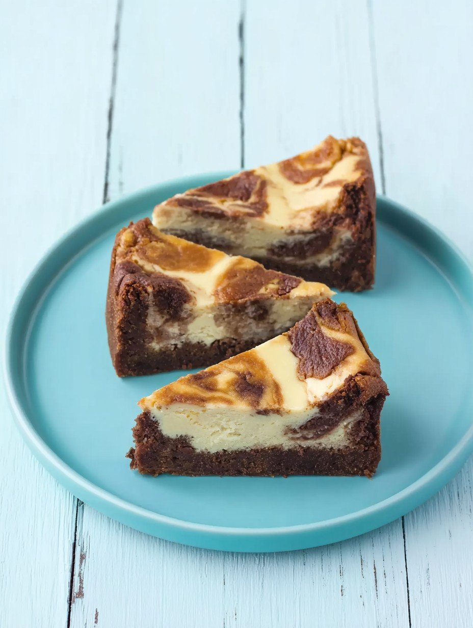 Servieren Sie den gekühlten Marmor-Brownie-Käsekuchen in schönen Stücken. Eine leichte Puderzuckerbestäubung kann das Erscheinungsbild zusätzlich veredeln und sofort den Appetit anregen.