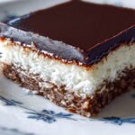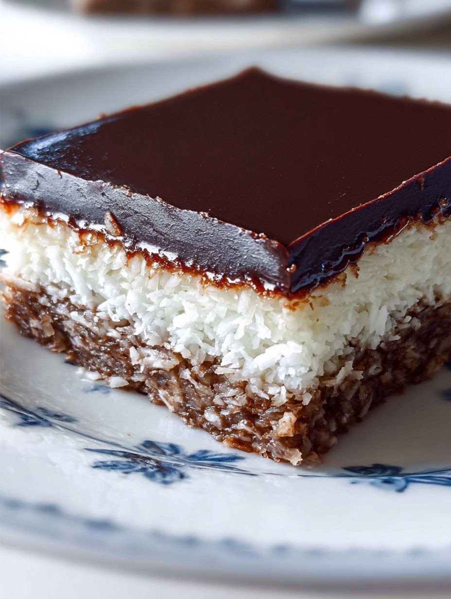 : Stellen Sie sicher, dass die Kokosfüllung gut angedrückt wird, damit sie beim Schneiden nicht auseinanderfällt.