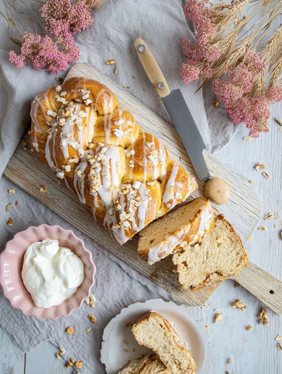 - **50 g gehackte Mandeln oder Haselnüsse** Verleihen dem Zopf eine angenehme Knusprigkeit und eine nussige Geschmacksnote, die perfekt zum süßen Guss passt.