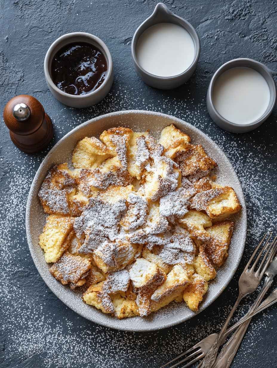 • **Puderzucker zum Bestäuben** Ohne Puderzucker kein echter Kaiserschmarrn! Er sorgt nicht nur für die traditionelle Optik, sondern auch für eine zusätzliche Süße, die zart auf der Zunge schmilzt.