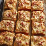 Dieser Pizzatoast bietet eine schnelle und köstliche Mahlzeit oder einen Snack. Knusprig geröstetes Toastbrot bildet die Basis für eine herzhafte Schicht aus geschmolzenem Käse und feinen Geflügelschinkenwürfeln, abgerundet mit einer Prise würziger Kräuter. Die Zubereitung im Ofen sorgt für eine gleichmäßige Bräunung und einen wunderbar zartschmelzenden Belag, der mit jedem Bissen überzeugt.