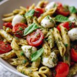 Ein Duft von frischem Basilikum und sonnengereiften Tomaten, umhüllt von cremigem Mozzarella und al dente Pasta – das ist der mediterrane Traum, der aus Ihrer Küche schwebt. Jeder Bissen dieses Salats ist ein kleiner Urlaub für die Sinne, voller lebendiger Farben und unwiderstehlicher Texturen.