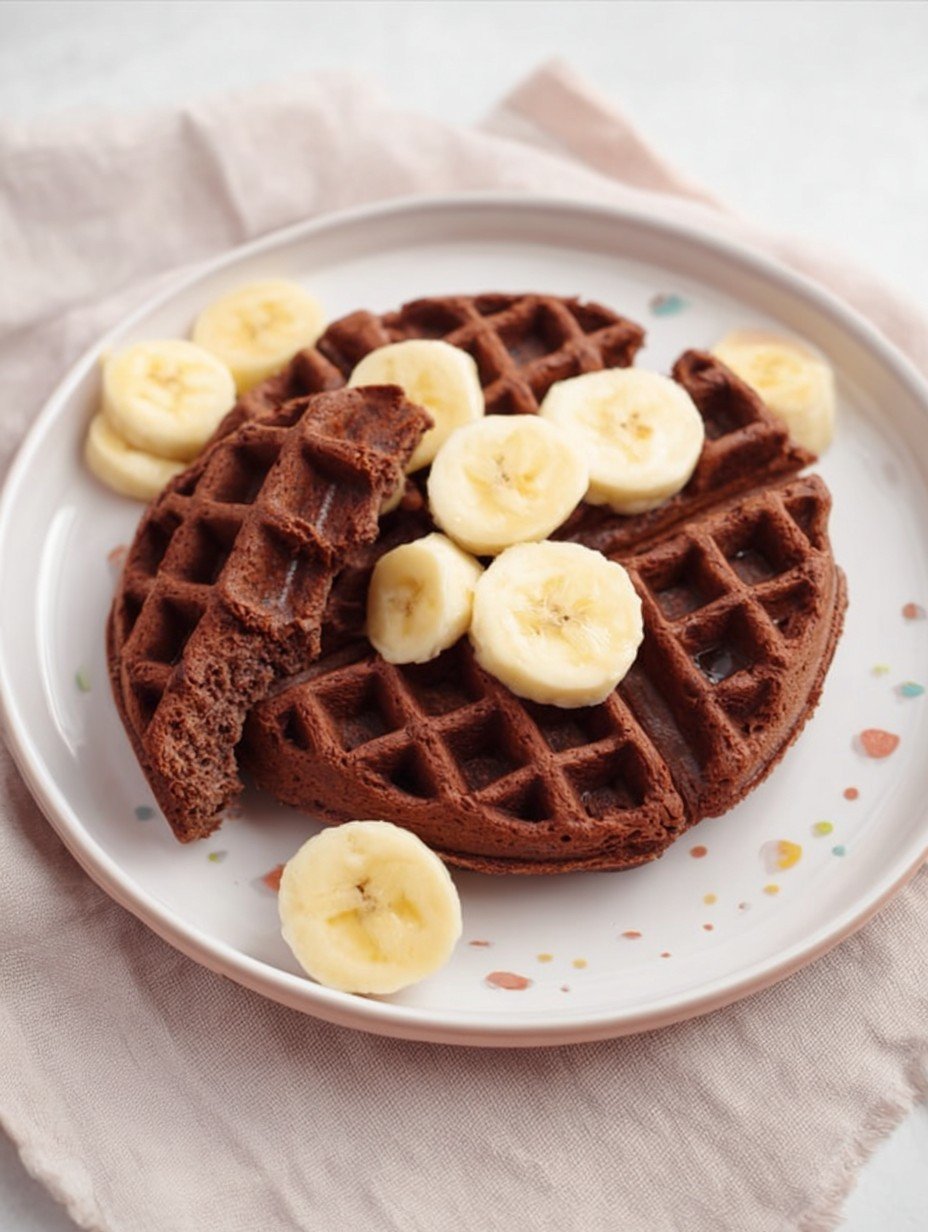 Diese Schoko Waffeln sind ein köstlicher und nahrhafter Snack, ideal für kleine Genießer. Sie zeichnen sich durch einen sanften Schokoladengeschmack aus, der auf natürliche Weise durch reife Bananen gesüßt wird. Die Waffeln sind außen leicht knusprig und innen wunderbar weich und fluffig, zubereitet im Waffeleisen. Serviert mit frischen Bananenscheiben bieten sie eine ausgewogene Süße und eine angenehme Textur.