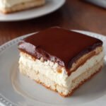 Dieser No-Bake Schichtkuchen ist ein elegantes Dessert, das ohne Backen zubereitet wird. Er besteht aus einer zarten Schicht Löffelbiskuits, einer luftigen Frischkäse-Sahne-Creme, einer süßen Karamellschicht und wird von einer glänzenden Schokoladenganache gekrönt. Die Kombination aus weichen, cremigen und schmelzenden Texturen bietet ein harmonisches Geschmackserlebnis, das Süße und eine leichte Kakao-Note vereint. Dieses Dessert ist ideal für besondere Anlässe oder als schneller Genuss.
