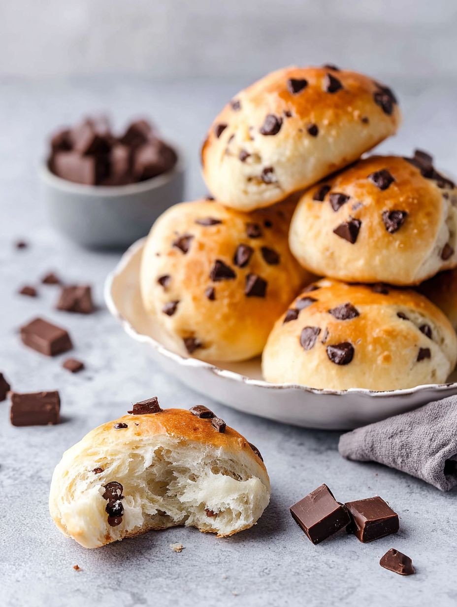 Diese Schokobrötchen zeichnen sich durch ihren besonders weichen und luftigen Teig aus, der mit zartschmelzenden Schokoladenstückchen durchsetzt ist. Gebacken bis zur goldbraunen Perfektion, bieten sie einen süßen Genuss mit jedem Bissen. Die leichte Süße des Hefeteigs harmoniert wunderbar mit der intensiven Schokolade und sorgt für ein angenehmes Mundgefühl.