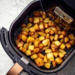 Für dieses Rezept werden festkochende Kartoffeln empfohlen, wie in unserer Zutatenliste angegeben. Diese Kartoffelsorte behält ihre Form während des Kochens besonders gut und zerfällt nicht leicht, was ideal für Würfel ist. Zudem haben festkochende Kartoffeln eine geringere Stärkekonzentration im Vergleich zu mehlig kochenden Sorten, was zu einer besseren Textur und Knusprigkeit beiträgt, wenn sie im Airfryer zubereitet werden. Das Ergebnis sind appetitliche Kartoffelwürfel, die außen schön knusprig und innen zart sind.