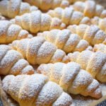 Diese zarten, halbmondförmigen Gebäcke bieten eine wunderbar weiche und fluffige Textur, die an Watte erinnert. Jedes Hörnchen ist mit einer cremigen Vanillepuddingfüllung versehen, die eine sanfte Süße und einen geschmeidigen Kontrast zum leichten Hefeteig bietet. Goldbraun gebacken, werden sie anschließend großzügig mit feinem Puderzucker bestäubt, was ihnen einen letzten Hauch von Eleganz und Süße verleiht. Diese Gebäcke sind darauf ausgelegt, mehrere Tage lang frisch und köstlich zu bleiben, was sie zu einer idealen Leckerei für jeden Anlass macht.