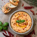 Dieser würzig-cremige Tomaten-Dip mit frischen Kräutern schmeckt hervorragend auf frischem Brot oder Baguette und eignet sich auch perfekt als Dip zu Gemüsesticks. Wenn etwas übrig bleibt (was selten passiert), können Sie den Dip bis zu 3-4 Tage in einem luftdichten Behälter im Kühlschrank aufbewahren… aber mal ehrlich, wer könnte da widerstehen? Genießen!